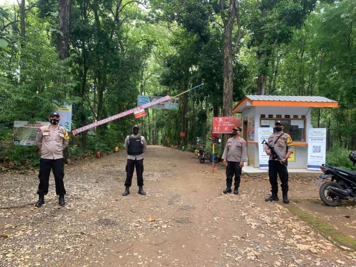 Nampak petugas gabungan dari Polsek dan Koramil menyampaikan imbauan kamtibmas dan protokol kesehatan dilokasi wisata.