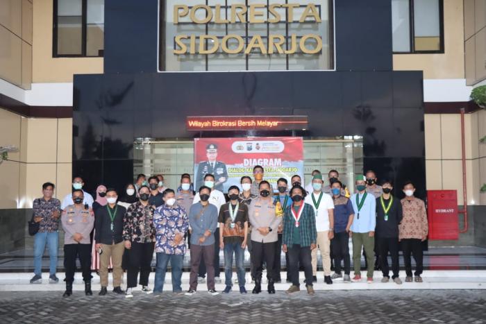 Sidoarjo, Kharismanews.id – Bersilaturahmi dalam forum yang gayeng guna saling menjaga kondusifitas kamtibmas, begitulah suasana yang tampak dalam acara Diagram Kapolresta Sidoarjo bersama mahasiswa Sidoarjo di ruang lobi Mapolresta Sidoarjo, Kamis (21/4/2022) sore.