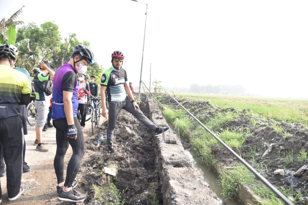 Naik sepeda ontel berangkat dari rumah dinas bupati di jalan Cokronegoro, Gus Muhdlor menyisir sejumlah proyek yang dilewatinya disepanjang jalan. Salah satunya yakni proyek betonisasi Jalan Wonoayu – Candinegoro di kecamatan Wonoayu.