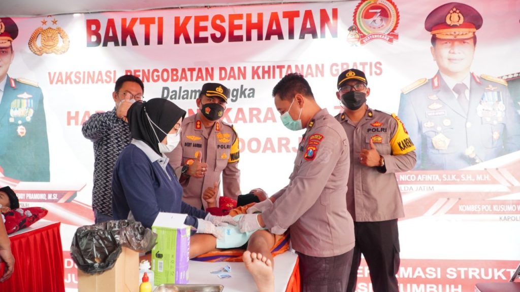 Bakti Kesehatan Polresta Sidoarjo, Sediakan Vaksinasi, Pengobatan Gratis dan Khitan