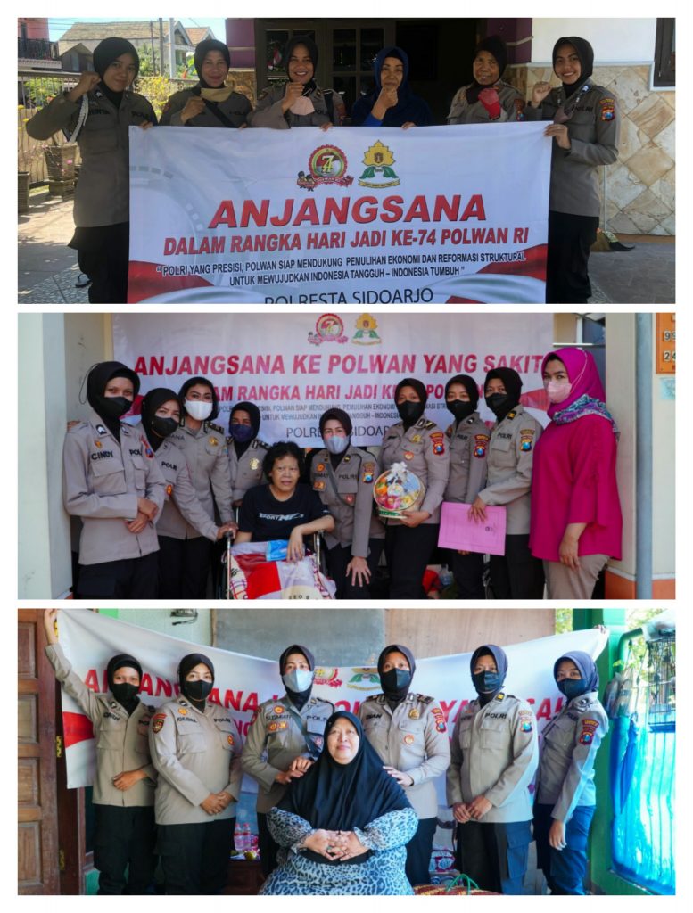 “Kegiatan anjangsana ini dilaksanakan dalam rangka memperingati HUT Polwan ke-74, sebagai upaya untuk menjaga tali silaturahmi kami dengan purnawirawan dan anggota Polwan,” kata Iptu Watini, Polwan Polresta Sidoarjo.