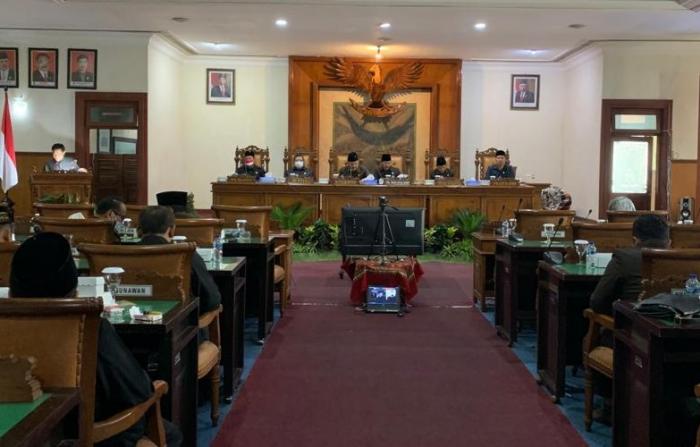 Tulungagung, Kharismanews.id – DPRD Tulungagung, Sabtu (20/8) siang, menyelenggarakan rapat paripurna dengan agenda penyampaian Ranperda Perubahan APBD Tahun 2022. Rapat paripurna berlangsung di Ruang Graha Wicaksana lantai II Kantor DPRD Tulungagung.
