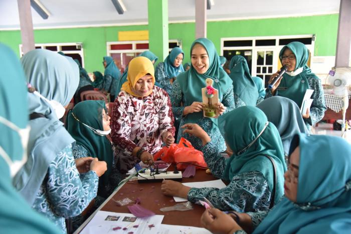 Ratusan Ibu-Ibu PKK di Kabupaten Sidoarjo Dilatih Membuat Bunga Artificial Dari Limbah Daun, Dekranasda Siap Pamerkan