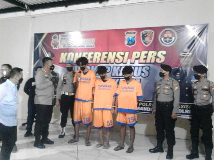 ” Tiga dewasa dua pelaku anak yakni ARN (19 ) warga Desa sumokali Candi ,PEF ( 16 ) kelurahan Pakis Sawahan Surabaya ,FML ( 16 ) Desa Sumokali Candi ,BIR ( 19 ) Sidokare Sidoarjo kota serta EAF ( 18 ) Sidokare Sidoarjo kota ” urainya.