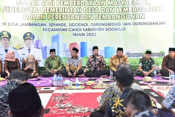 Sidoarjo, Kharismanews.id – Pentingnya keterlibatan masyarakat dalam mewujudkan pembangunan Kabupaten Sidoarjo yang sustainable (berkesinambungan). Pembangunan yang berorientasi pada skala prioritas kebutuhan sehingga penggunaan APBD bisa dibelanjakan dengan efektif. Mulai dari pembangunan desa sampai pembangunan di wilayah kabupaten. Pernyataan itu disampaikan Bupati Sidoarjo Ahmad Muhdlor Ali saat menggelar dialog terbuka dengan masyarakat Kecamatan Candi. Jum’at Malam, (7/7/2023).