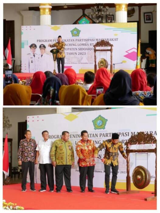 Sidoarjo, Kharismanews.id – Bupati Sidoarjo Ahmad Muhdlor Ali meluncurkan lomba antar RT (Rukun Tetangga) di Pendopo Delta Wibawa, pada Kamis (30/11/2023). Kategori yang dilombakan antar RT ini terbagi menjadi 5 yaitu; RT Sehat, RT Asri, RT Tahan Pangan, RT Berbudaya dan RT Jimpitan. Nantinya, akan dinilai setiap kategori dan akan diambil tiga juara terbaik.