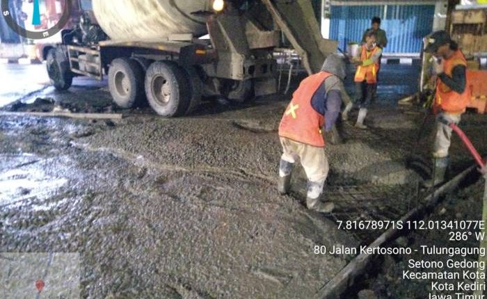 Dinas PUPR Kota Kediri melakukan pengecoran rigit beton di jln stasiun